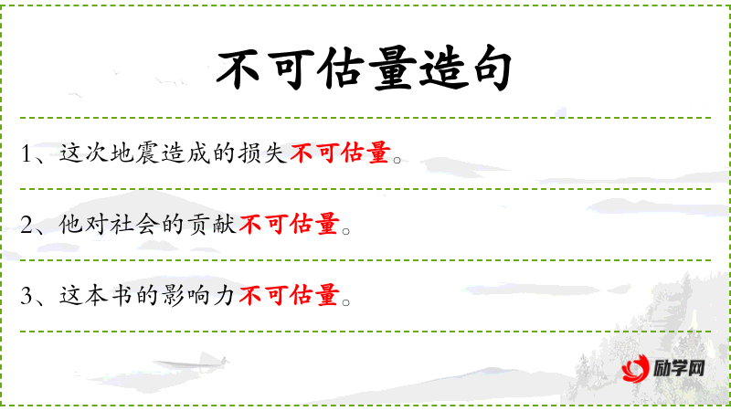 1. 【不可估量】 估量:估计。不可以估计。形容数量大或程度重。