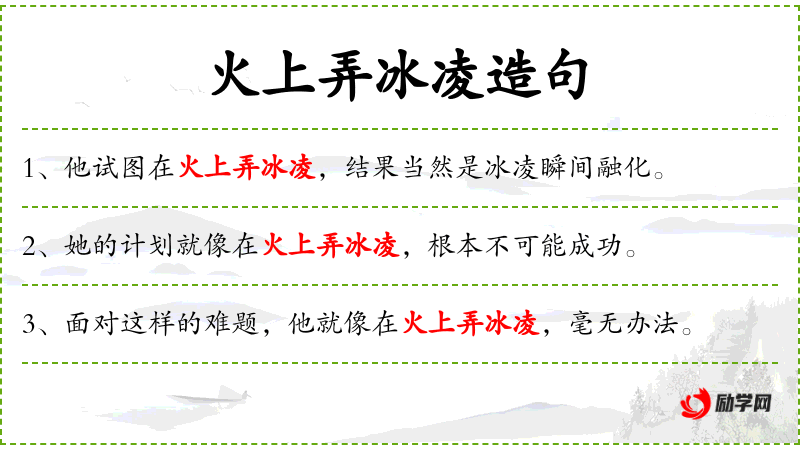 3. 【火上弄冰凌】 - 冰凌见火即融。比喻事情很容易办到。