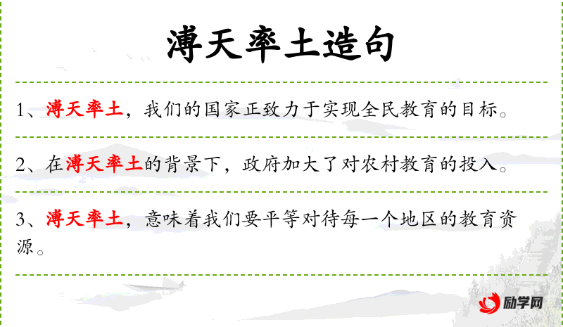4. 【溥天率土】 指整个天下、四海之内。