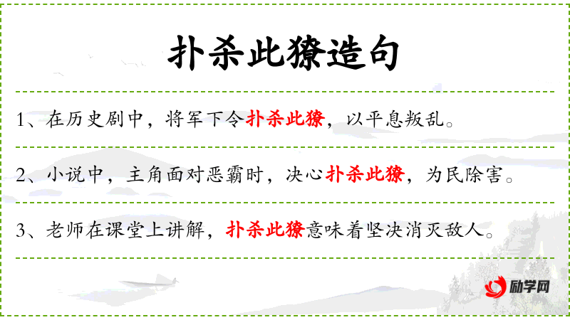 - “在小说中,主角面对恶霸时,坚定地决定扑杀这个恶人,以保护民众。”