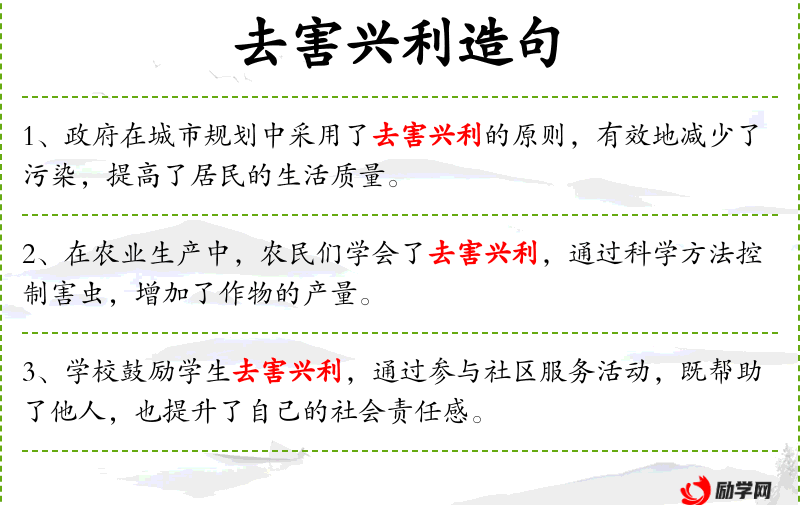 - 去害兴利:消除有害的,发展有利的。