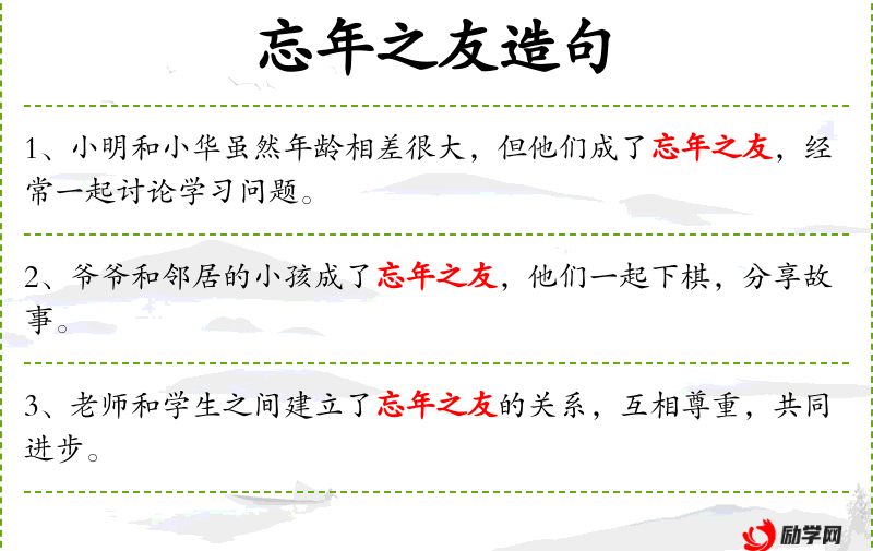 - 忘年之友:指年龄相差很大但关系亲密的朋友。