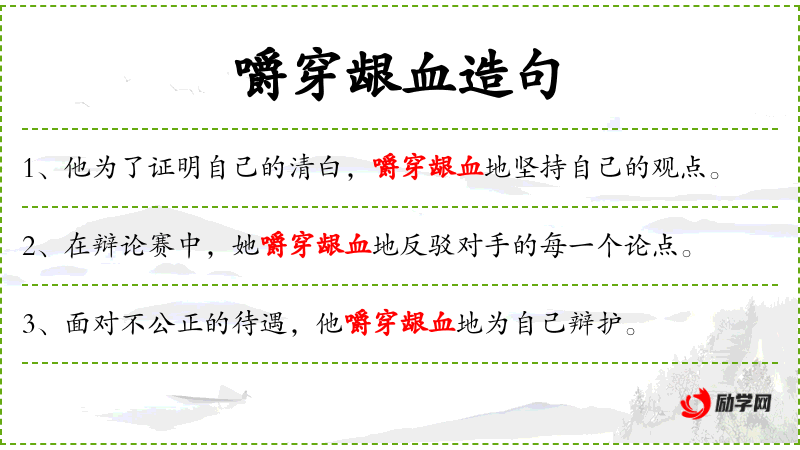 句子:“面对不公正的待遇,他嚼穿龈血地为自己辩护。”
