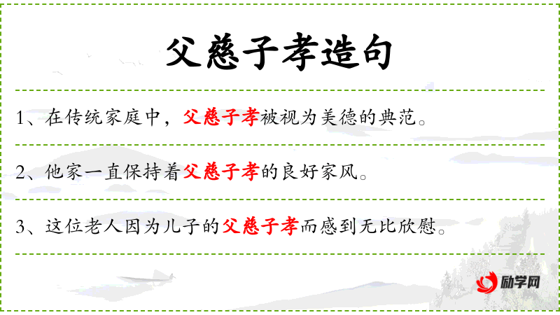 4. 【父慈子孝】 - 父:指父母;子:子女。父母对子女慈爱,子女对父母孝顺。