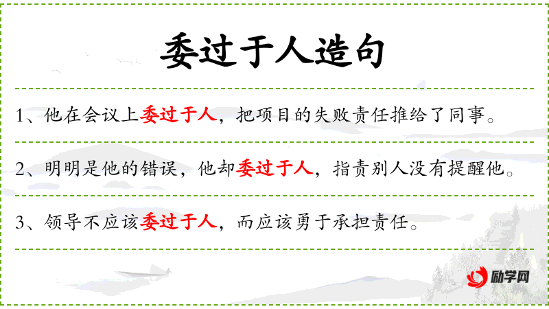 - “他犯了错误,却把责任推给别人,并指责别人没有提醒他。”