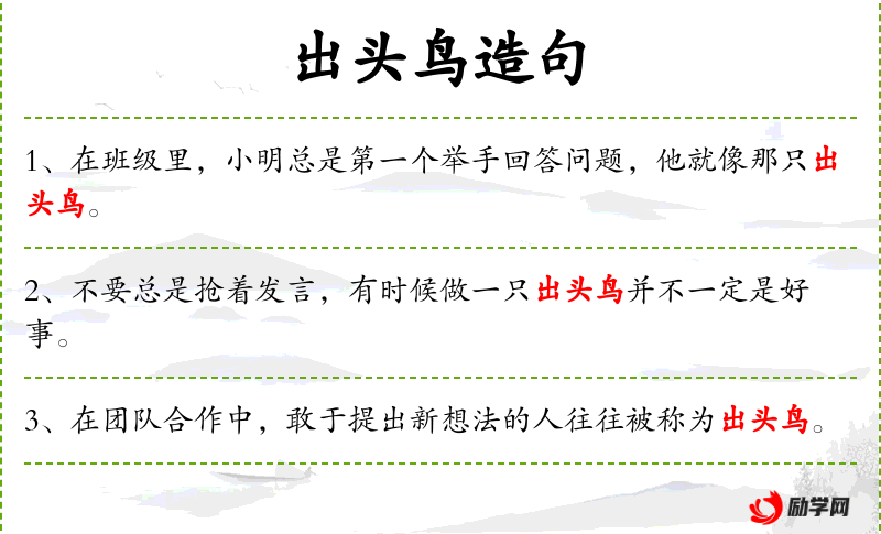 - 小明在班级里总是率先举手回答问题,他就像是那只出头鸟。