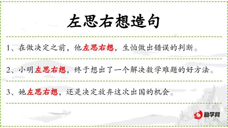 - 左思右想:成语,表示反复思考。