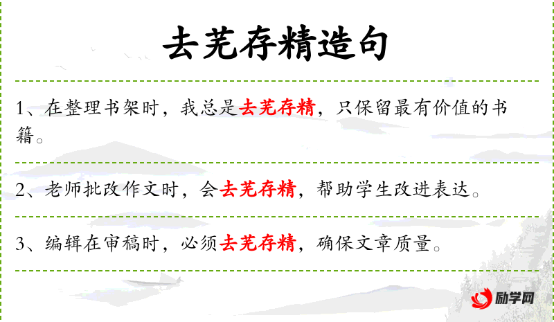 - 去芜存精:成语,意为去除杂质,保留精华。