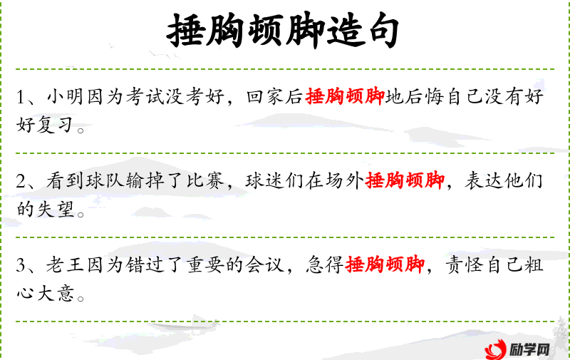 - “捶胸顿脚”这个成语在**文化中常用来形容极度懊悔或愤怒。