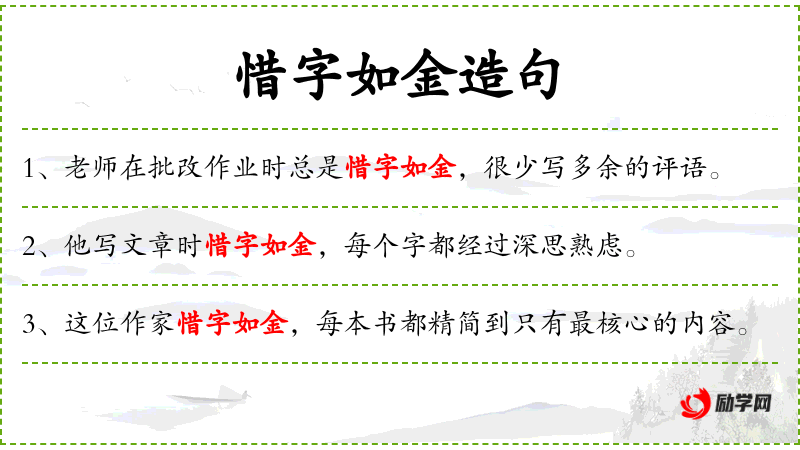 - 宾语:无明显宾语,但“惜字如金”可以理解为一种行为或态度