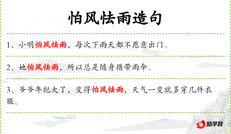 - 怕风怯雨:敏感于天气变化 / 不怕风不怕雨(坚强)