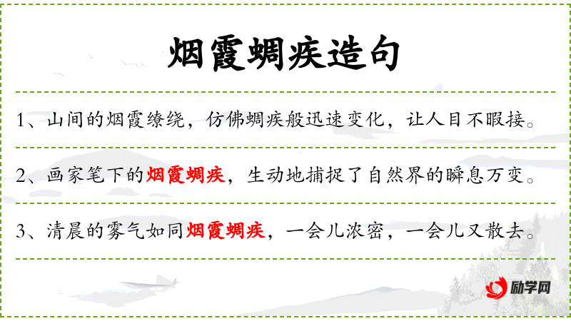 2. 【烟霞蜩疾】 - 烟霞:指山水;蜩疾:久治不愈的病,比喻积久成习,不易改变的嗜好、习惯。指爱好山水成癖。