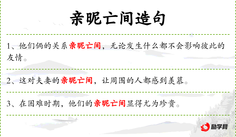 1. 【亲昵亡间】 亲昵:很亲近;亡:通“无”。形容关系十分密切,没有丝毫隔阂。