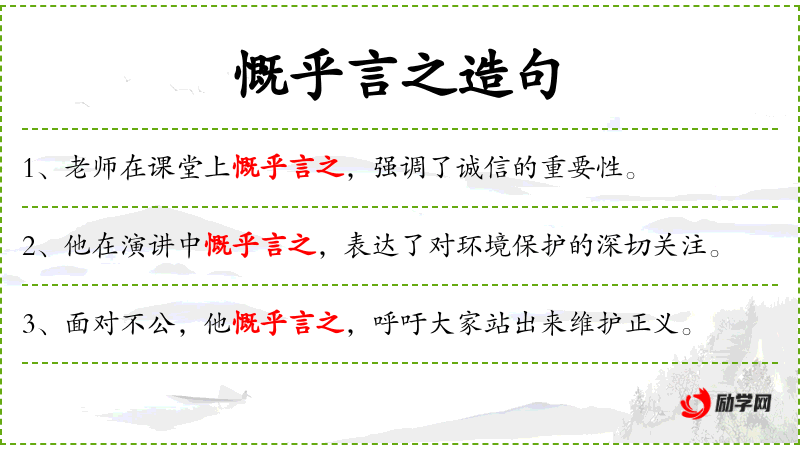 - 慨乎言之:形容说话时情感丰富,言辞激昂。