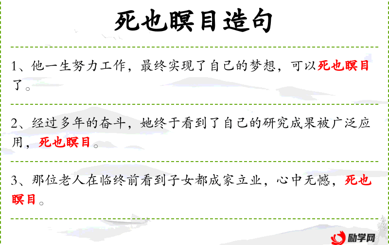 3. 【死也瞑目】 瞑目:闭上眼睛。指死后无所牵挂。