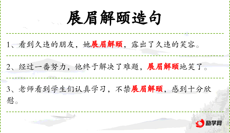句子:“经过一番努力,他终于解决了难题,展眉解颐地笑了。”