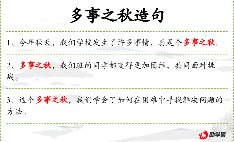 - 多事之秋:指一个时期内发生了很多事情,通常指困难或挑战较多的时期。