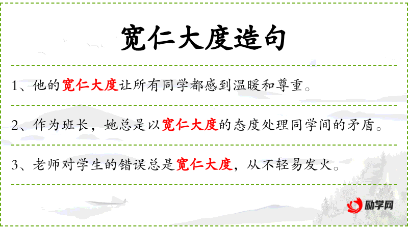 句子:“老师对学生的错误总是宽仁大度,从不轻易发火。”