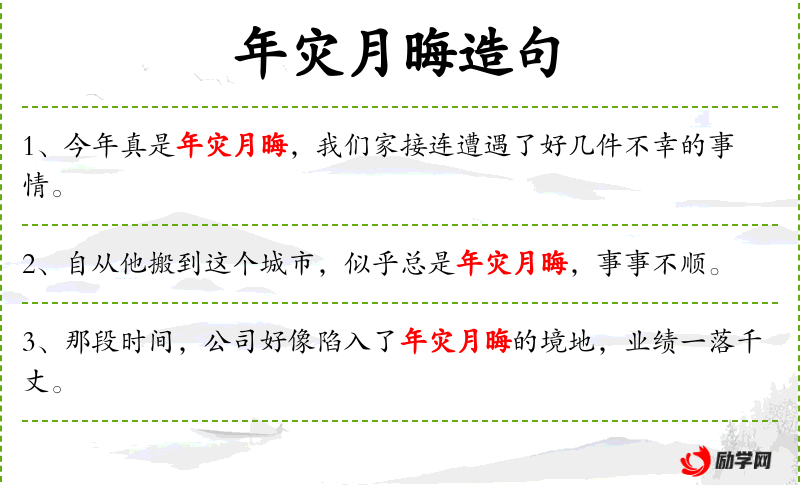 - 年灾月晦:这个表达可能源自**传统文化,指不顺利或困难时期。