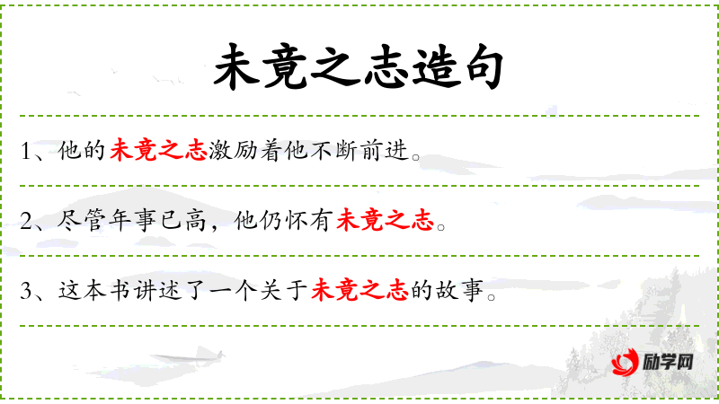 2. 【未竟之志】 没有完成的志向。