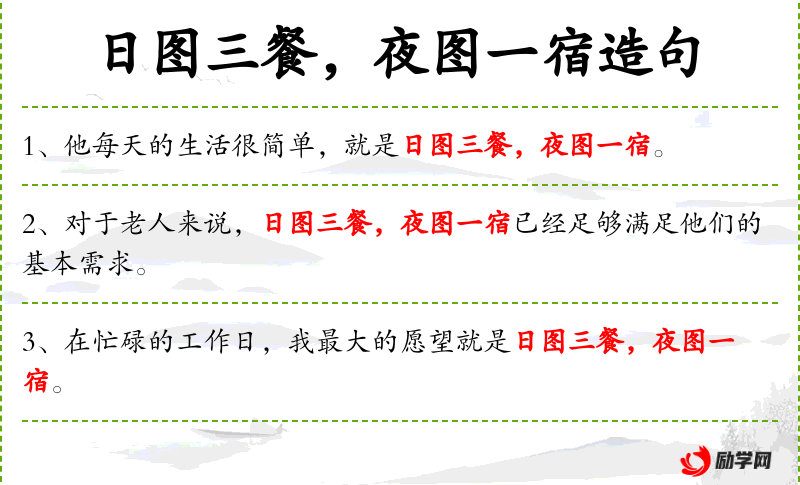 - 定语:“日图三餐,夜图一宿”(修饰“期盼”)
