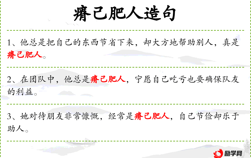 2. 【瘠己肥人】 - 瘠:瘦,引申为约束;肥:胖,引申为宽大。严以律己宽以待人。