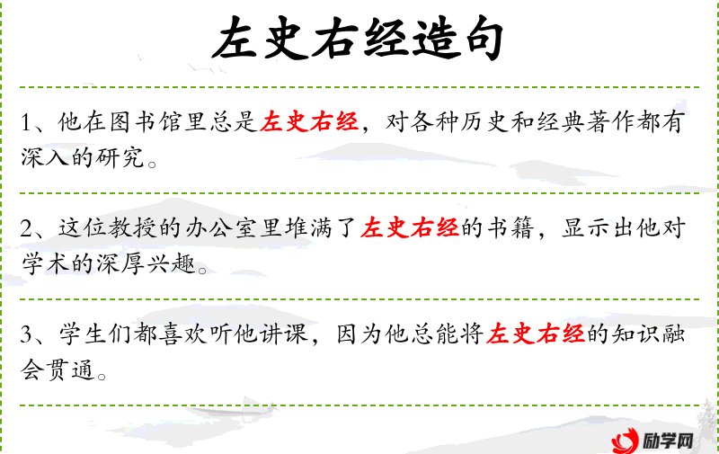 - 左史右经:形容书籍种类繁多,涵盖广泛的知识领域。 *. 学术:与高等教育和研究相关的知识领域。