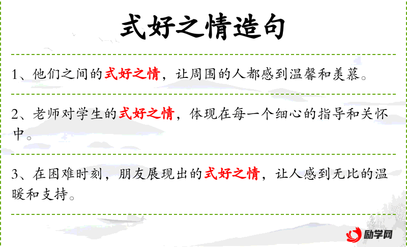 1. 【式好之情】 式:古代发语词;好:指兄弟和睦。兄弟和睦友好的情谊。