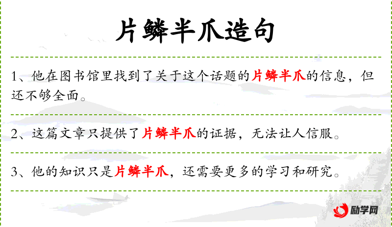 1. 【片鳞半爪】 比喻事物的极小部分。
