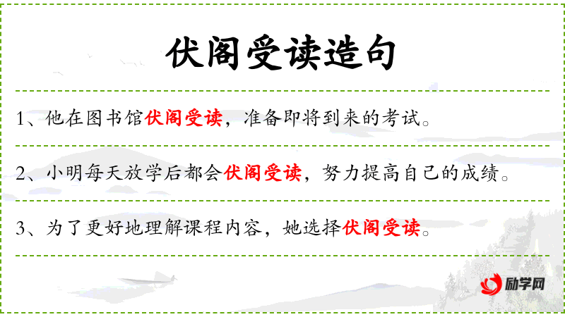 句子:“伏阁受读不仅帮助他掌握了知识,还培养了他的自学能力。”