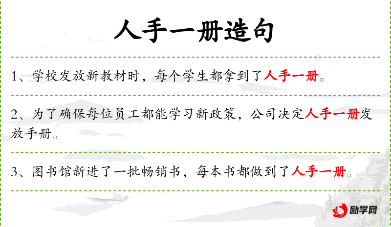 - 人手一册:每个人都有一本,表示分配的普遍性。