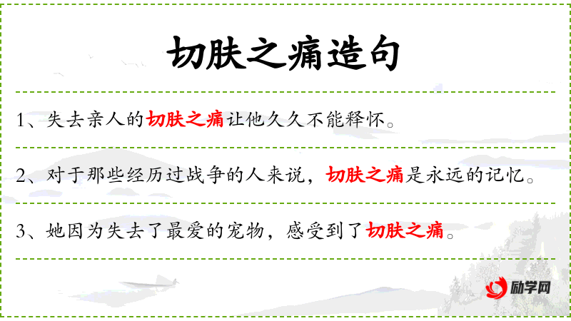 3. 【切肤之痛】 切肤:切身,亲身。亲身经受的痛苦。比喻感受深切。