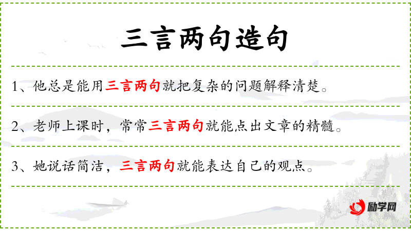 1. 【三言两句】 - 几句话。形容话很少。同“三言两语”。