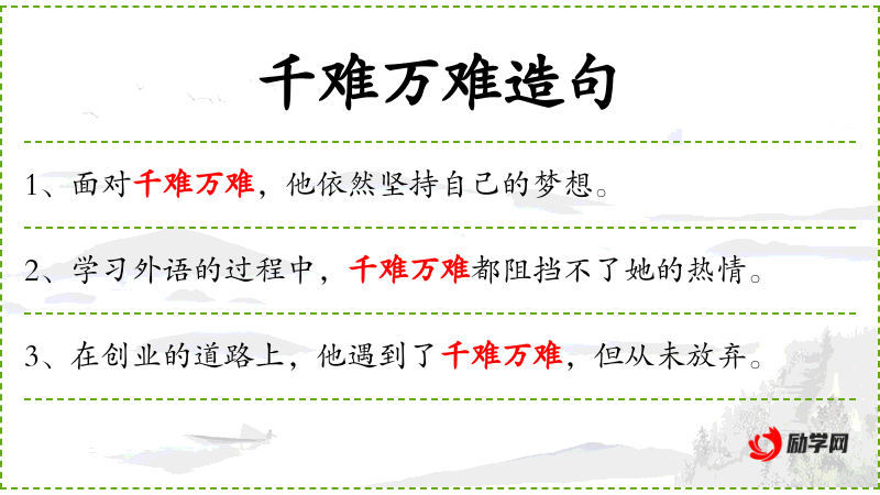 - 千难万难:成语,形容困难非常多。