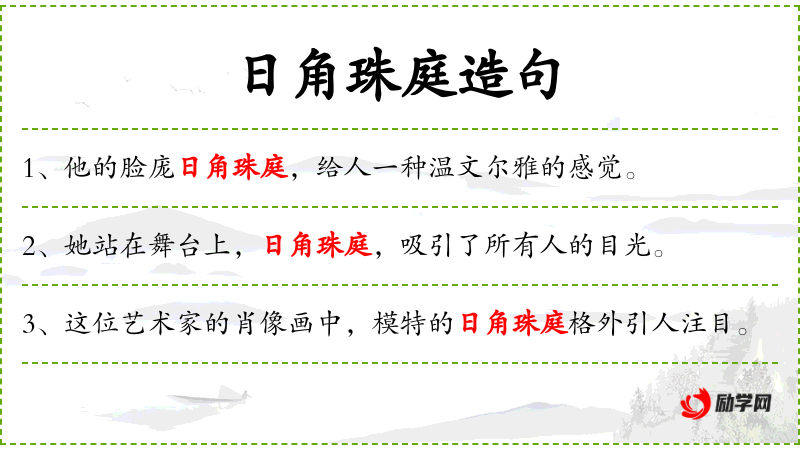 - 日角珠庭:这是一个成语,用来形容君王的威严和尊贵。