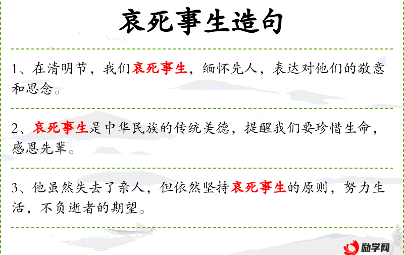 - 哀死事生:哀悼逝者,同时珍惜生者。
