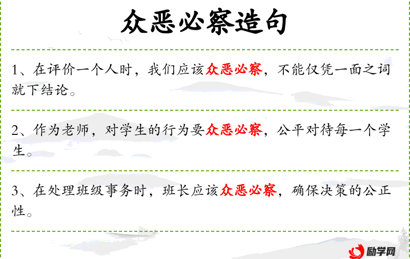 - 成语、典故:“众恶必察”源自《论语》,意指全面审查。