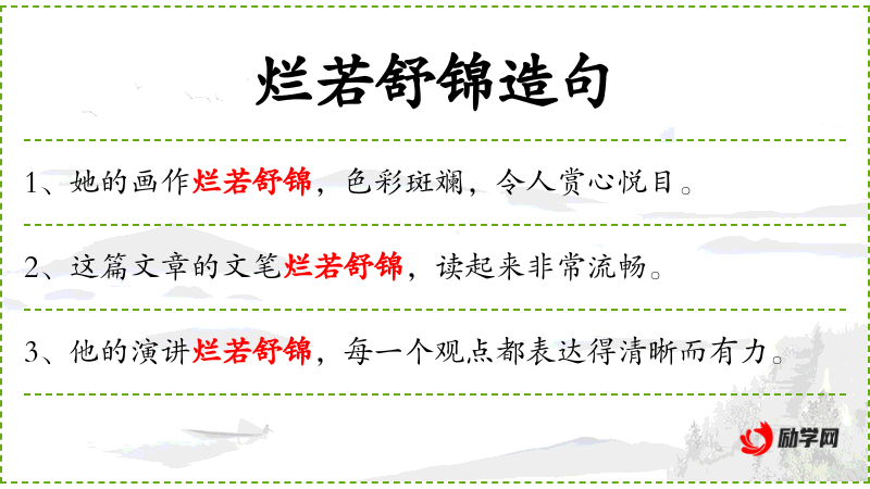 1. 【烂若舒锦】 - 形容文辞华丽。同“烂若披锦”。