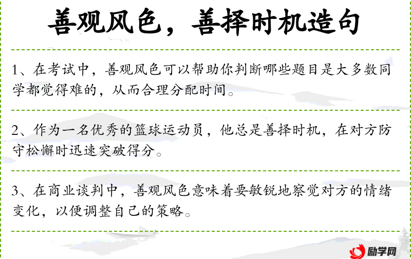 - 善择时机:善于选择合适的时机。