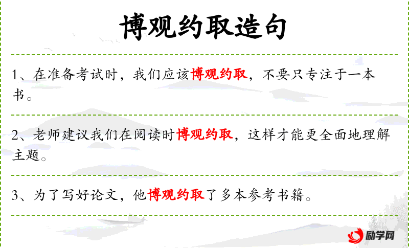 - 博观约取:成语,意为广泛阅读并精选。