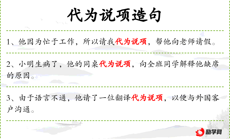 - 代为:动词,表示代替某人做某事