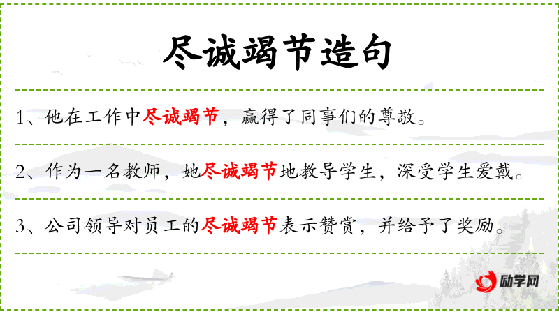 - 尽诚竭节:形容非常尽心尽力,忠诚尽责。