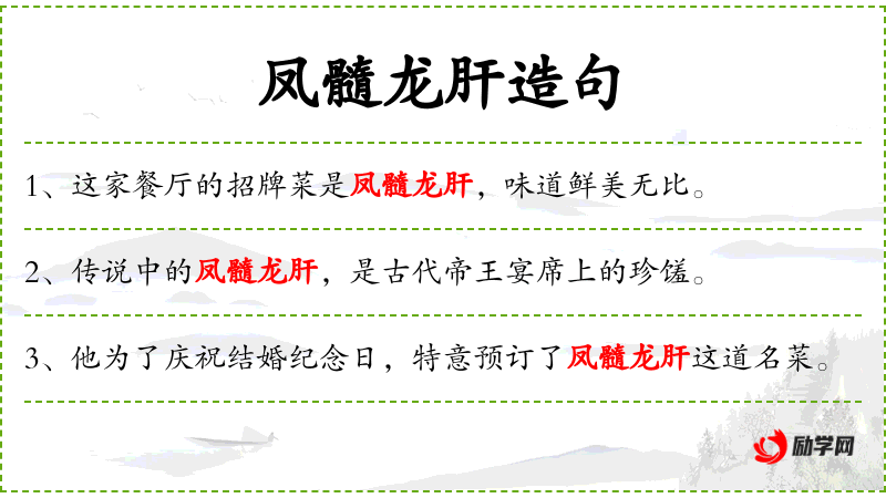 “凤髓龙肝”这个表达可能源自**传统文化,其中“凤”和“龙”都是神话中的生物,象征着吉祥和尊贵。这个表达强调了菜肴的高贵和稀有。