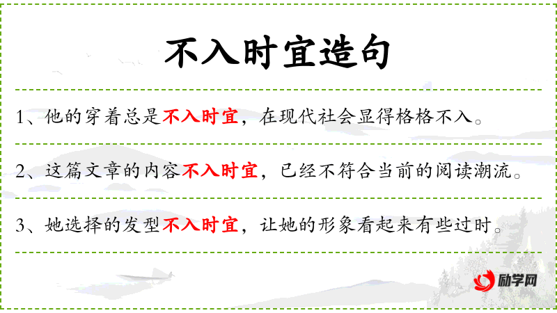 - 不入时宜:过时、不合时宜