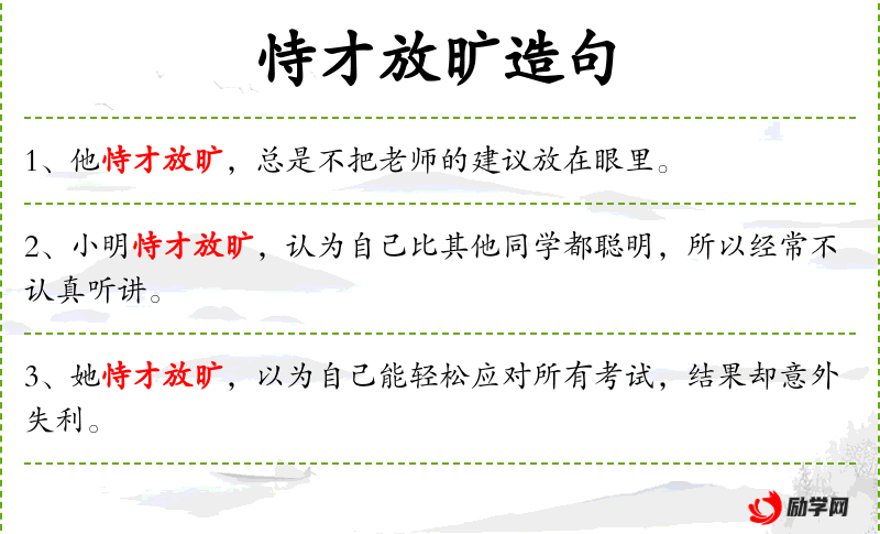 - 恃才放旷:自负、傲慢