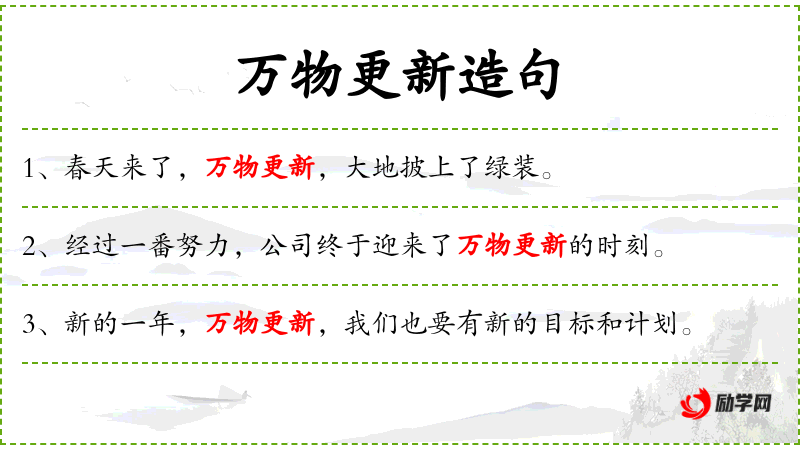 1. 【万物更新】 - 更:变更。事物或景象改换了样子,出现了一番新气象。