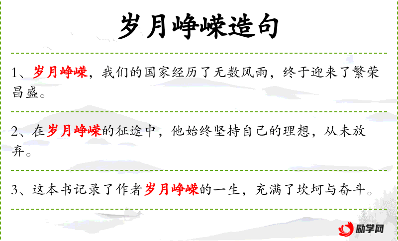 - 岁月峥嵘:形容时间的流逝和经历的丰富,常用来形容人生或历史的波澜壮阔。