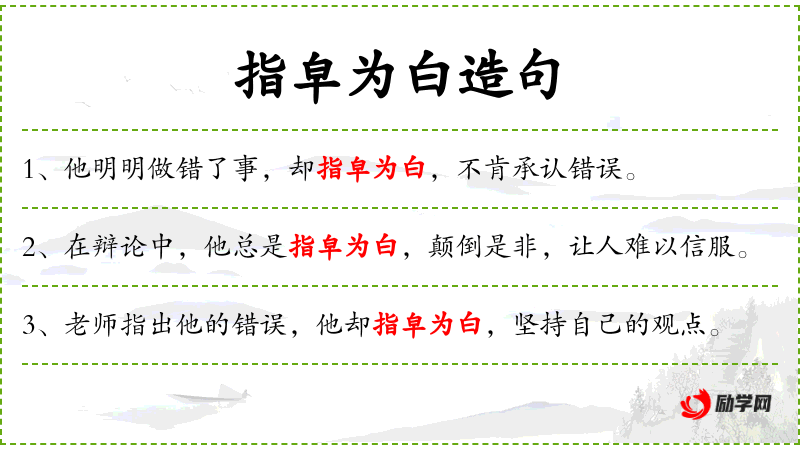 - 谓语:指皁为白,试图掩盖