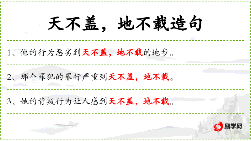 - 天不盖,地不载:这是一个成语,意思是形容某人的行为极其恶劣,连天地都不容。
