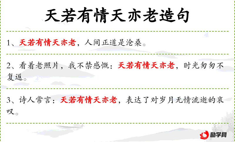 - 当孩子们问及“天若有情天亦老”的意思时,我耐心地解释,这是在说时间无情,万物终将老去。